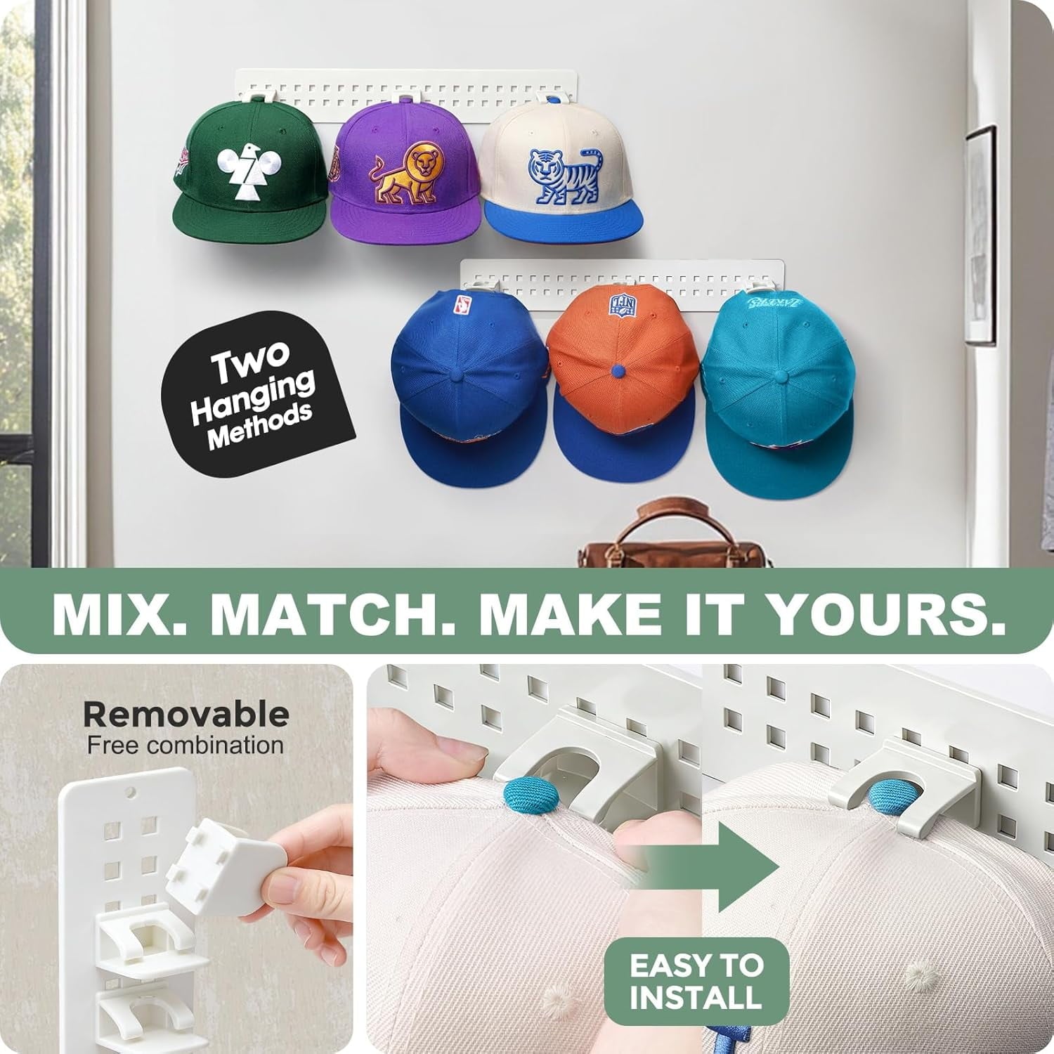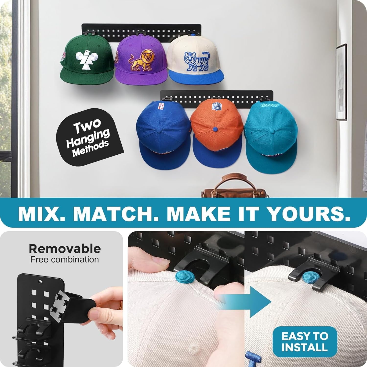 - Removable Design: The hooks on this baseball cap organizer are detachable, allowing you to freely adjust spacing based on the number of hats—vertical or horizontal orientation works. DIY your own custom hat rack however you like.