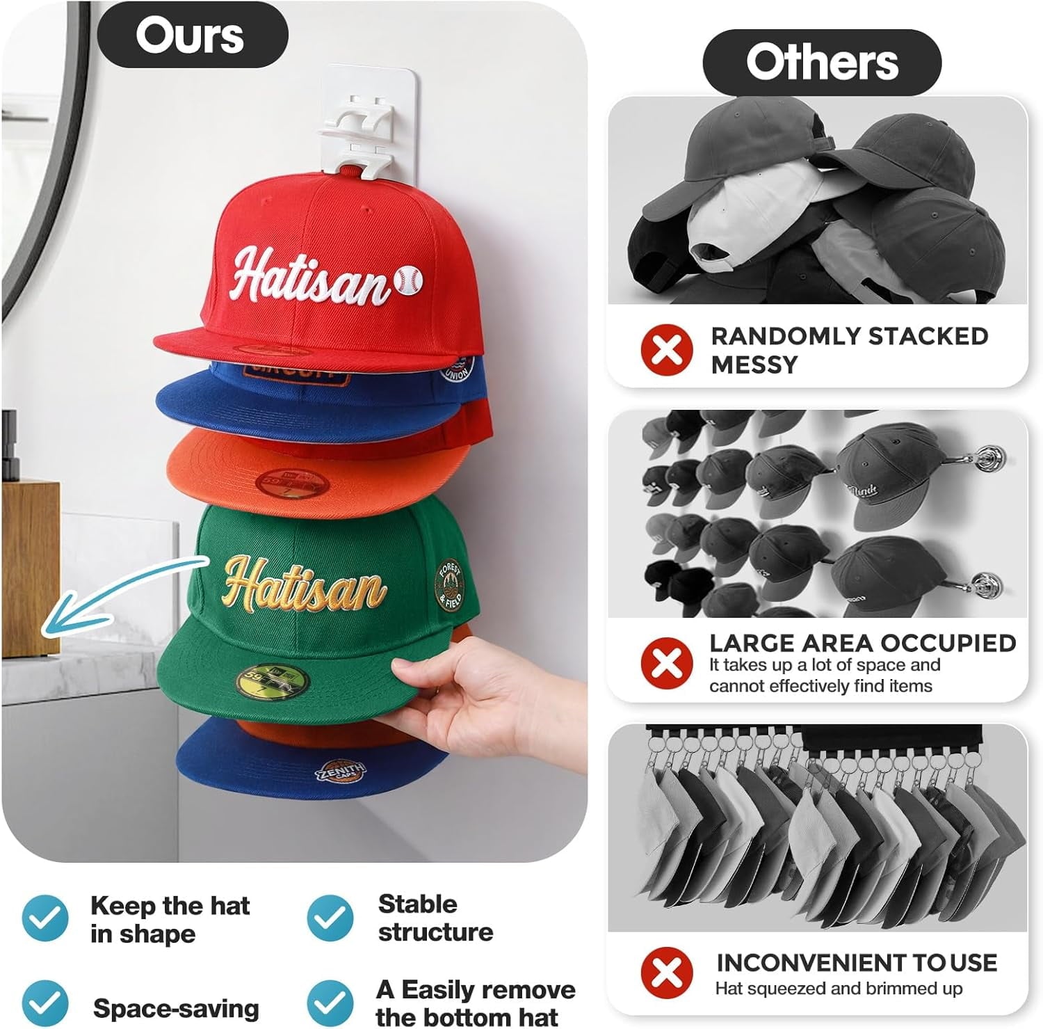 - Efficient Storage: This hat holder not only organizes hats but also doubles as an accessory hanger. Perfectly suited for scarves, towels, keys, and other household accessories, it maximizes storage space while preventing clutter.