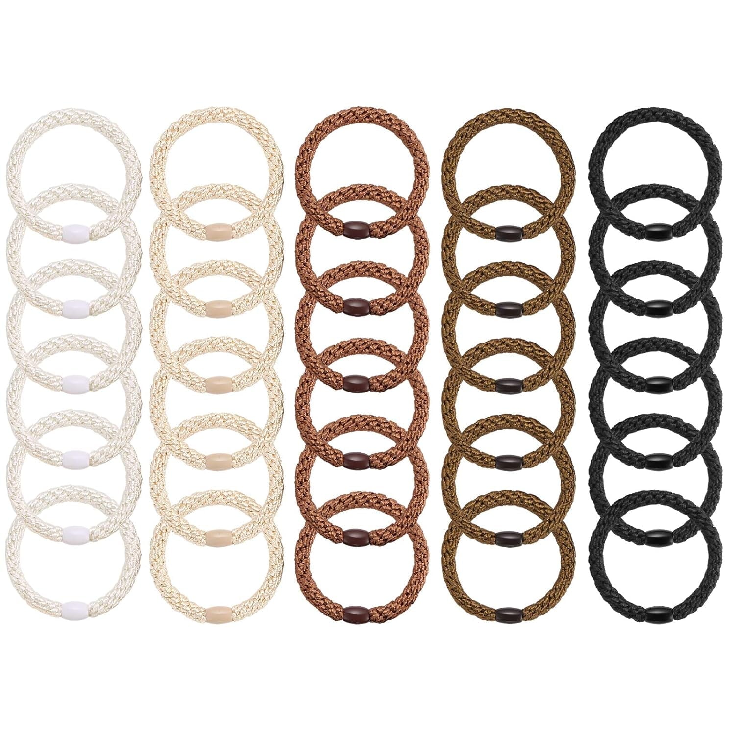 Livhil 30 Pcs Hair Ties No Damage No Crease Hair Elastics, Hair Ties for Women Girls, Elastics Hair Bands Ponytail Holders for Thick Hair (Black/Brown/White/Beige/Coffee)