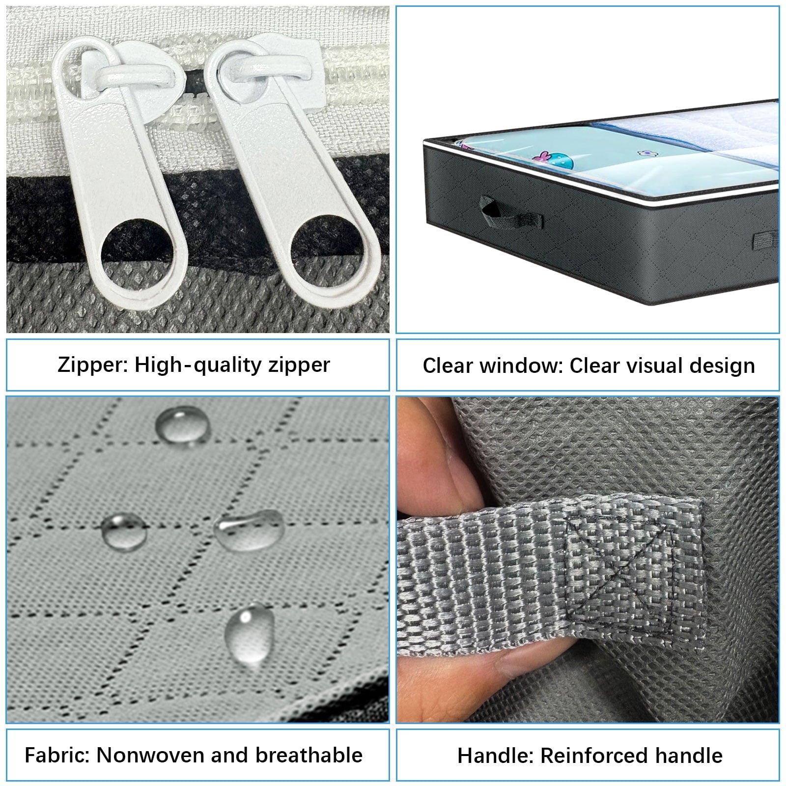 Heavy-Duty Zipper And Clear Window: Stainless steel zipper creates a dust-proof shield for clothes, shoes, or seasonal blankets in these under the bed storage bins. The extra-wide clear PVC window lets you scan items like holiday sweaters or camping gear in 3 seconds – no unzipping, no mess!