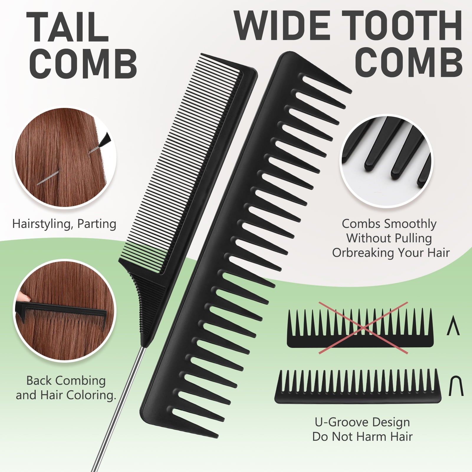 - 4 IN 1 HAIR BRUSH SET: The detangling hair brush set includes paddle brush, styling brush, wide tooth comb and tail comb. The hair combs kit will meet your different hair care needs and allow you to create a variety of hairstyles.