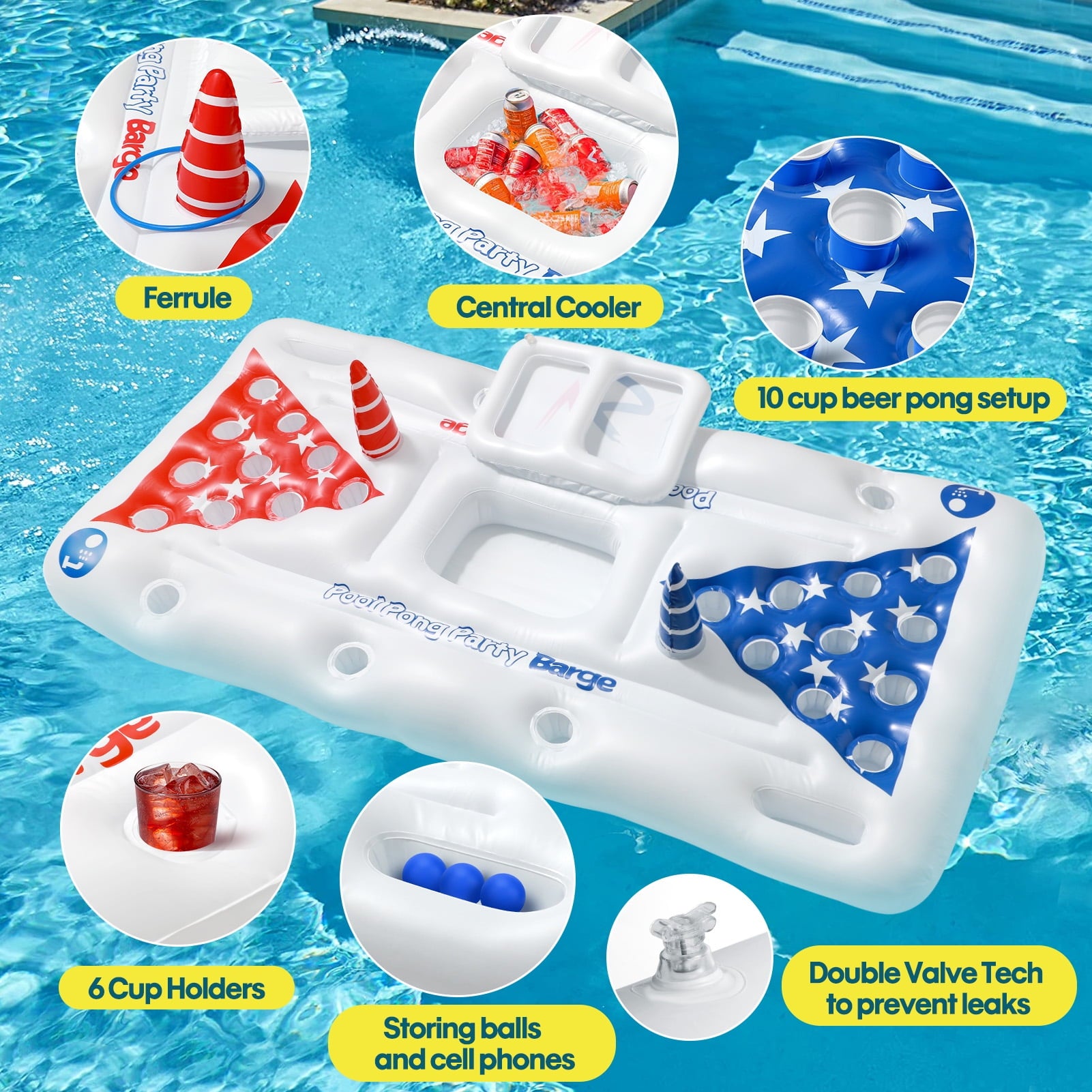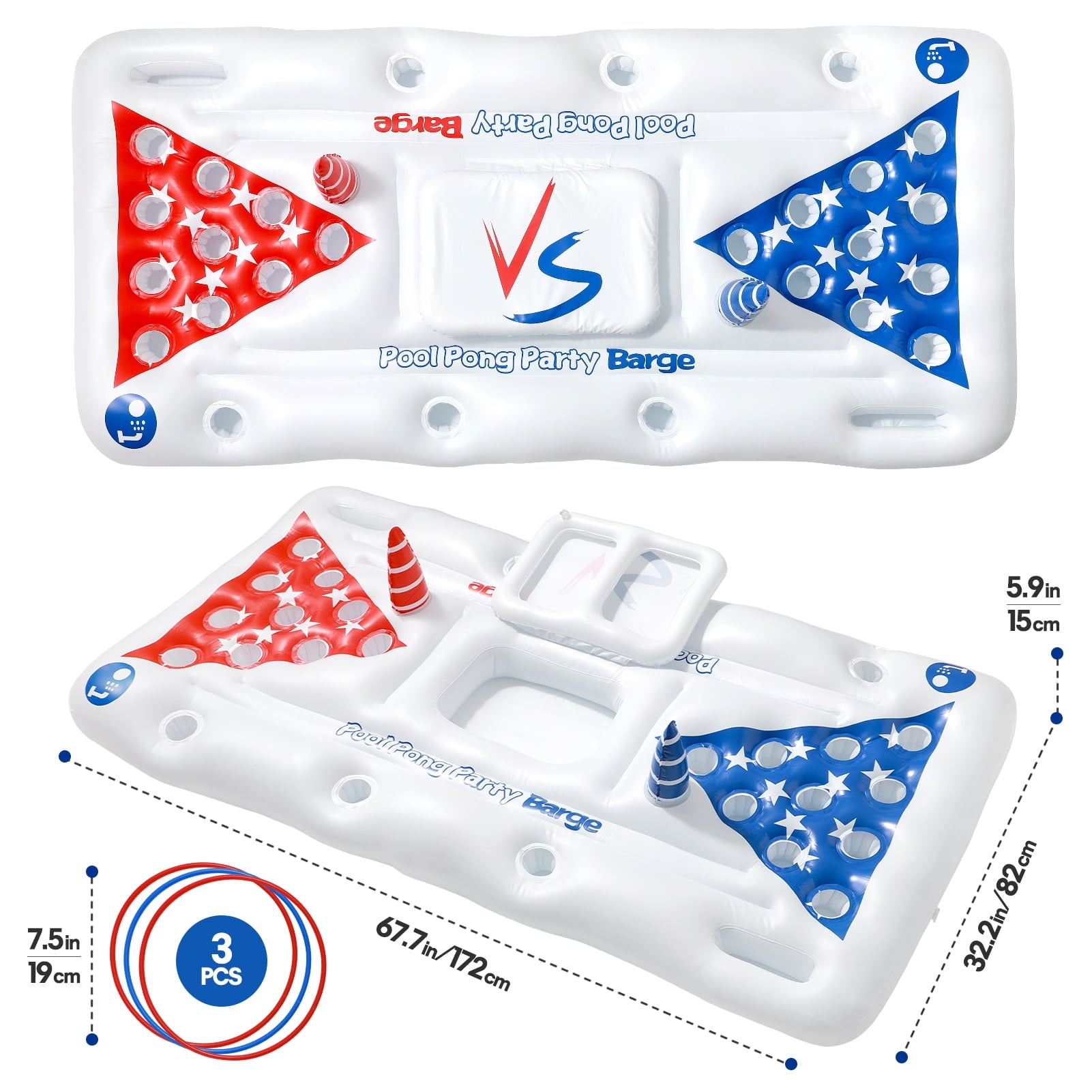 Livhil Pool Games for Adults, 6-foot floating beer pong table with cup holders for social floating
