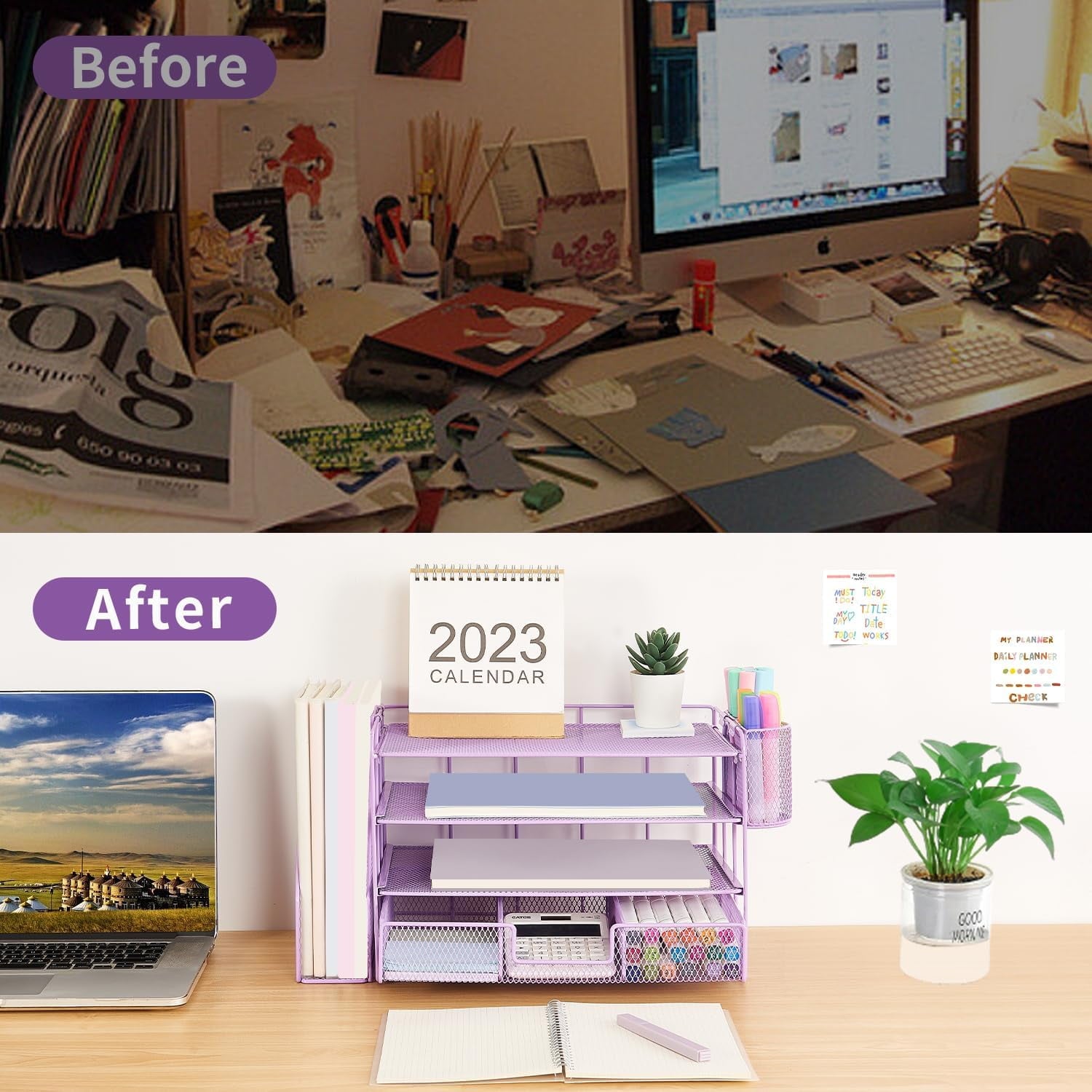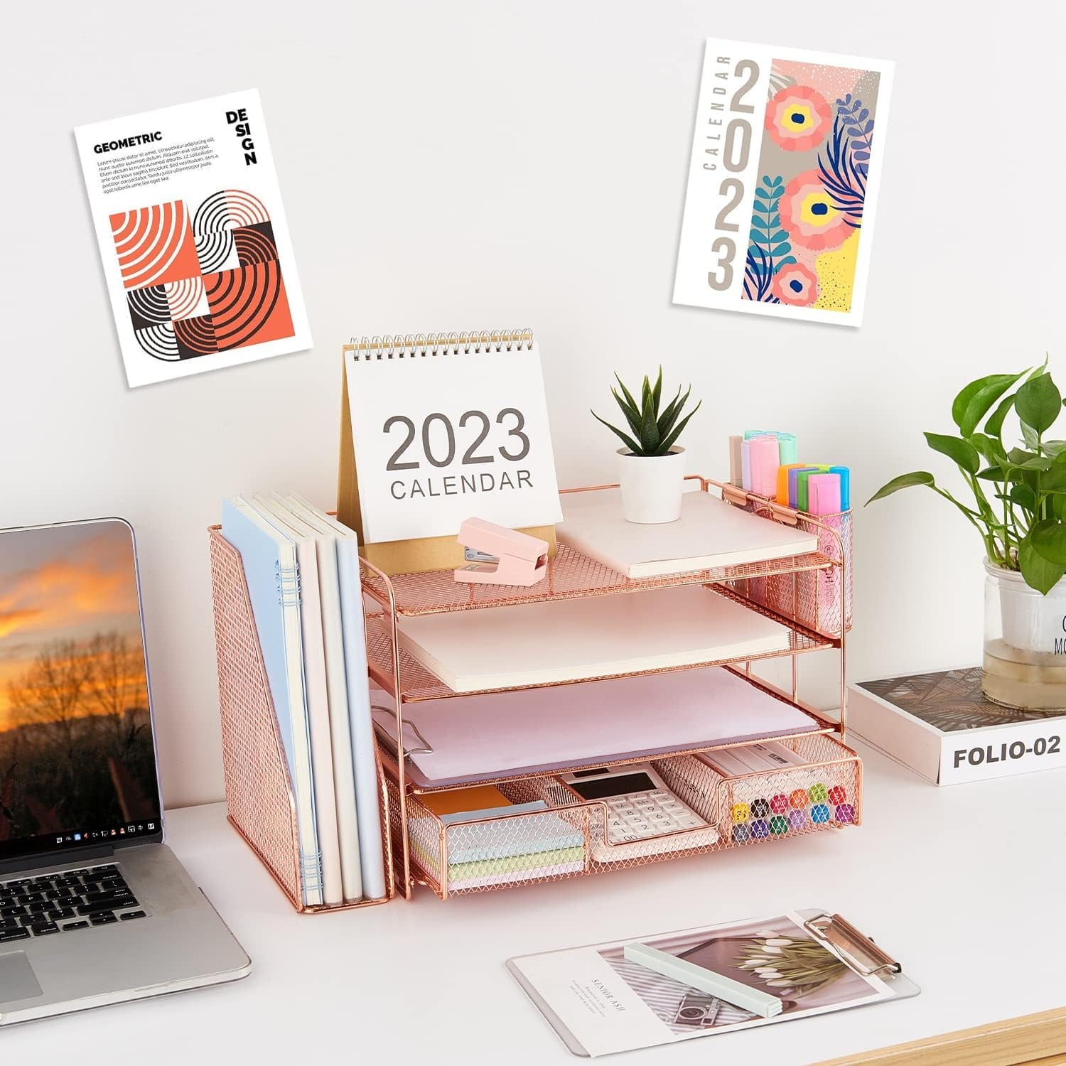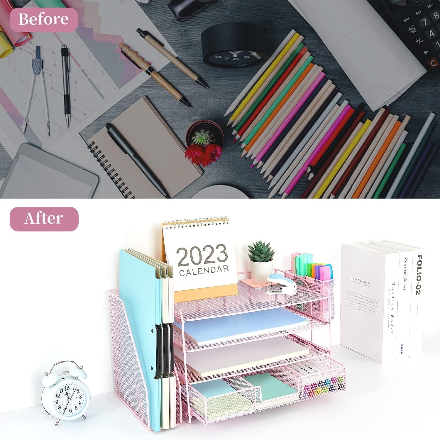 This office desk organizer for desk has a modern and elegant design that will enhance your workspace and complement any decor. All-in-one design has enough space to hold all your office accessories, make full use of your space, keep you away from messy desktop and stay organized. You will choose exactly how to organize your own papers, letters, files, folders, mail and much more. Having a clean desktop can speed up your work and be more creative all day!