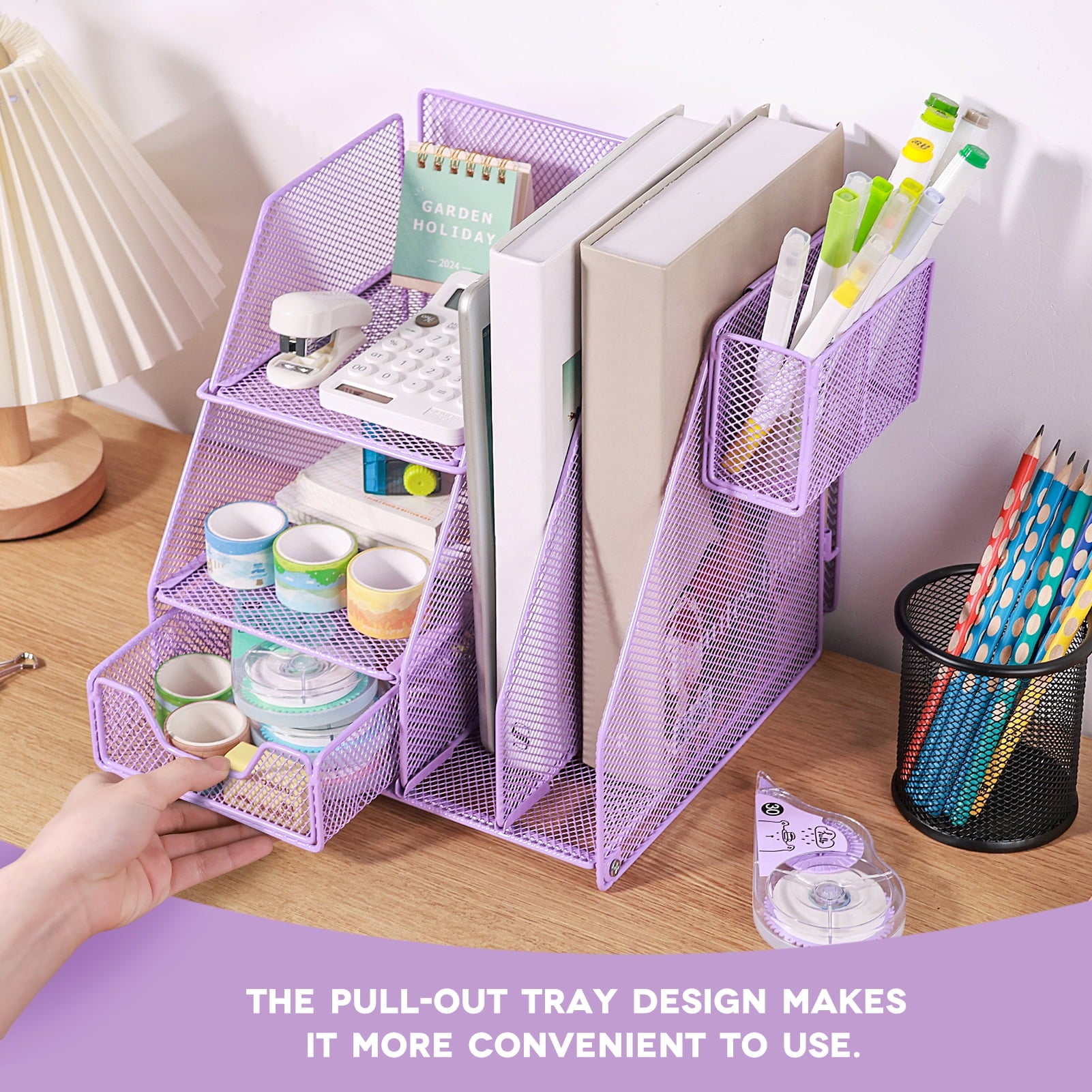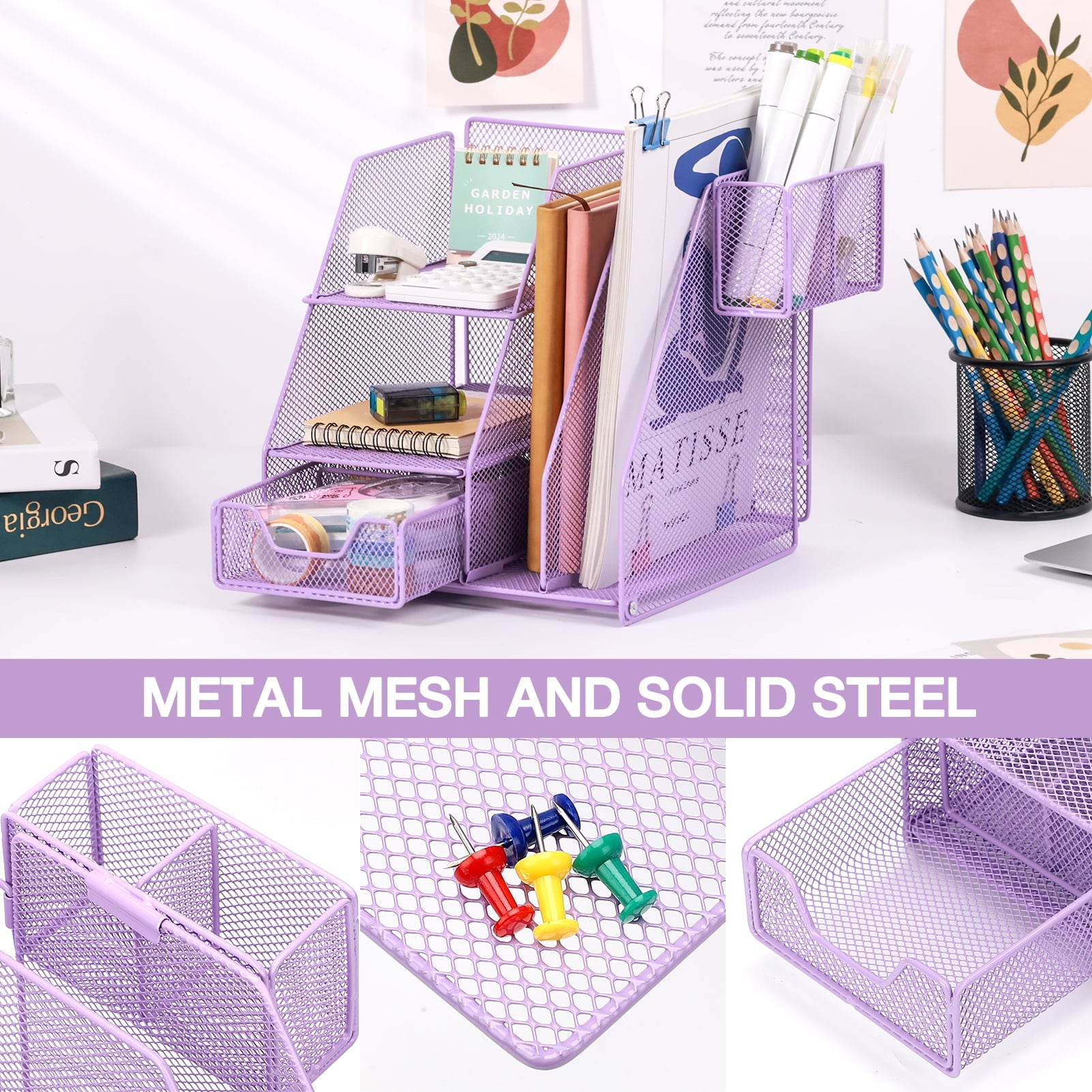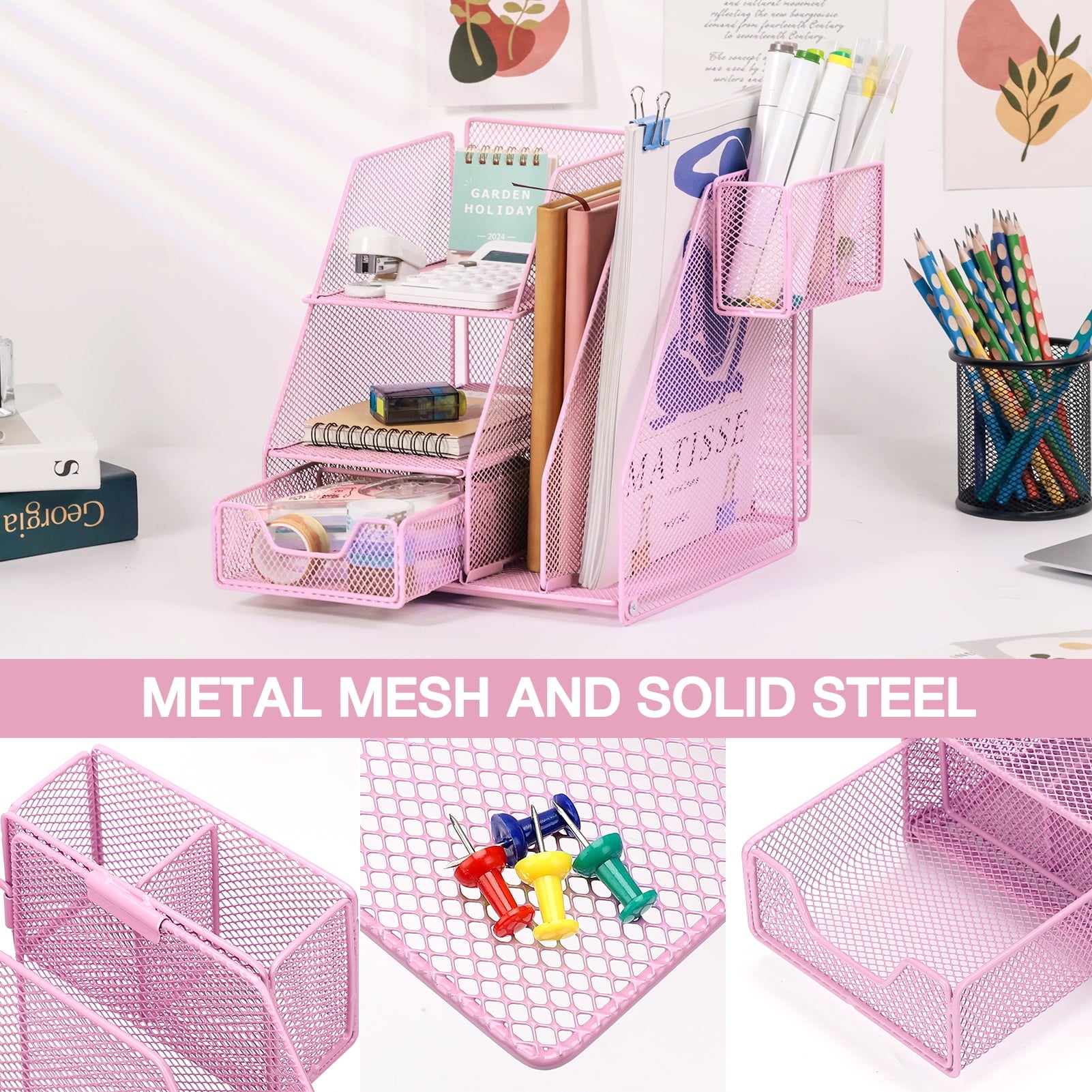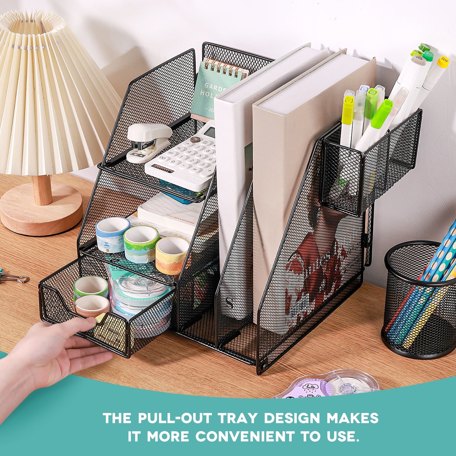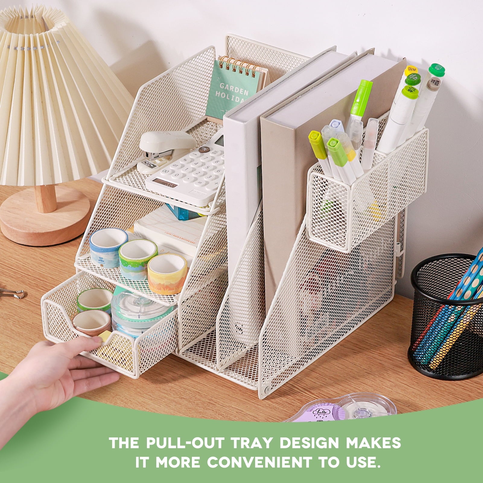 - Function:Desk organizer, Pen organizer,Mail storage, Mess accessories collection,Phone holders.