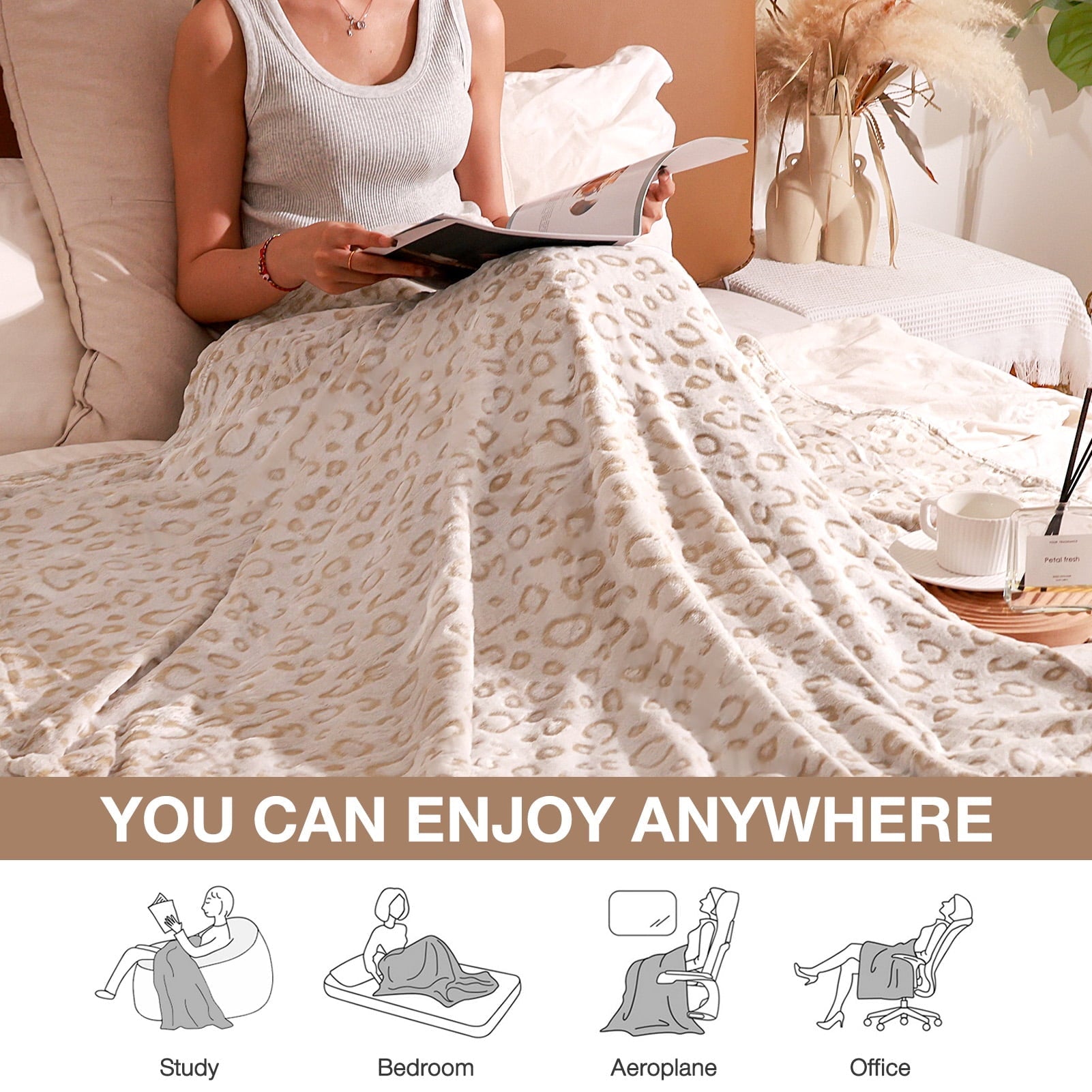 SIZES AND COLORS: Available in throw, twin sizes.Throw size measures 50 by 60-inches, twin size measures 60 by 70-inches. The elegant color is leopard print with a little gradient.