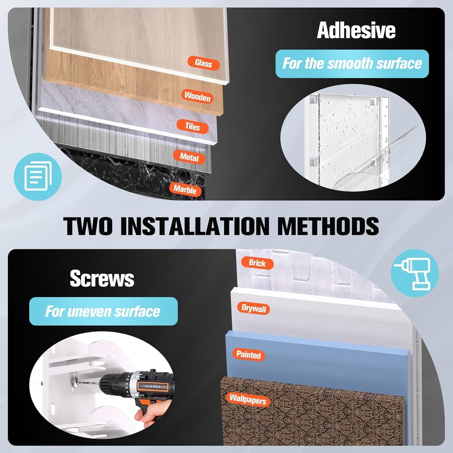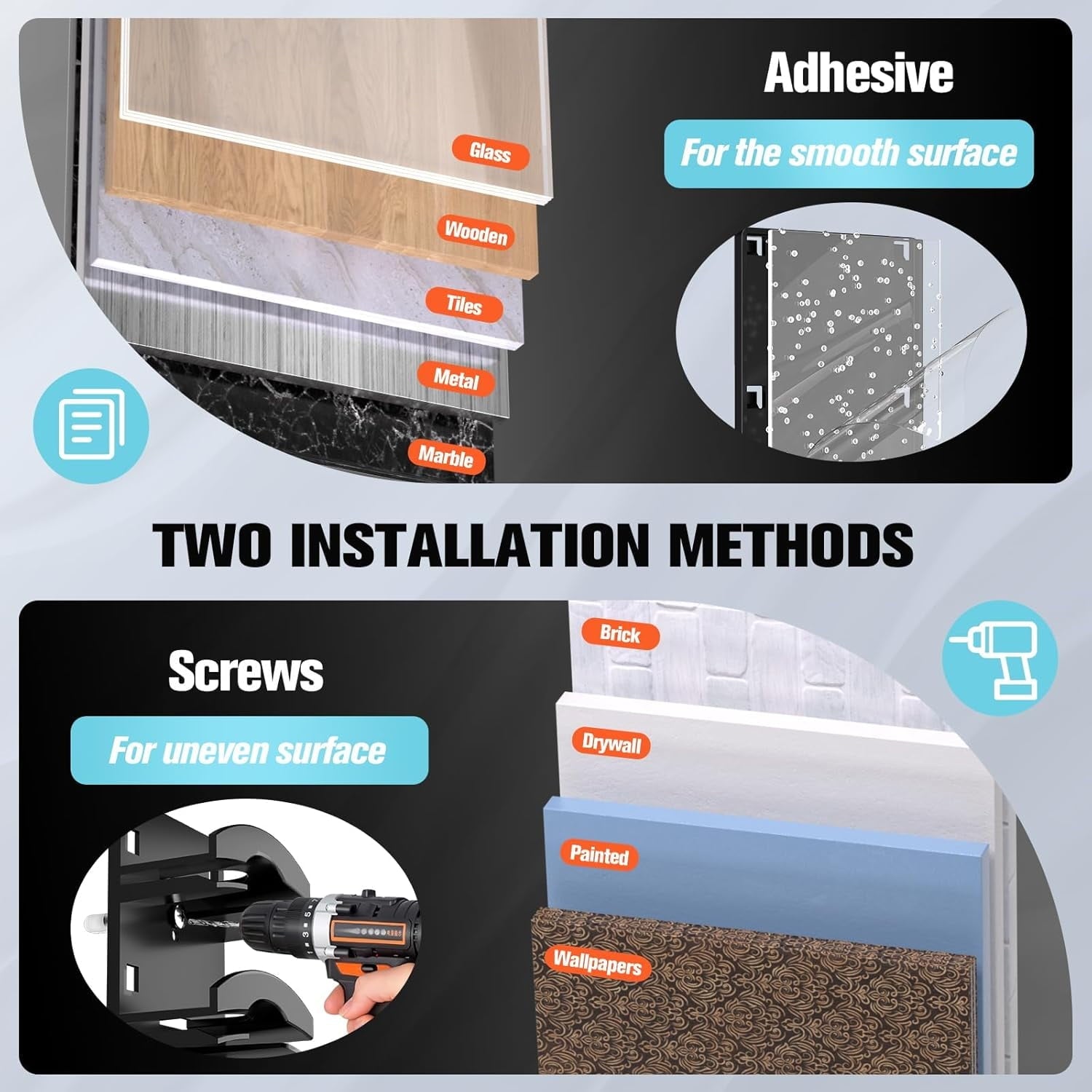 - TWO INSTALLATIONS METHODS: Hat Rack for wall can be installed in two ways: self-adhesive and screw drilled holes. You can choose the appropriate method according to the usage scenario. Note: Due to the firm sticking, please confirm the direction and position before sticking, the part of the wall plate with holes is the top to avoid forming repeated tears