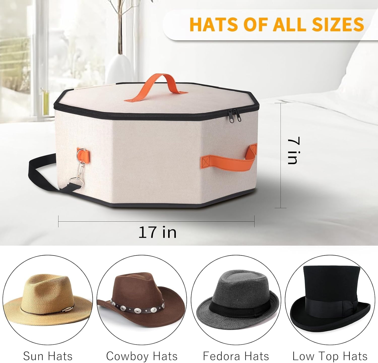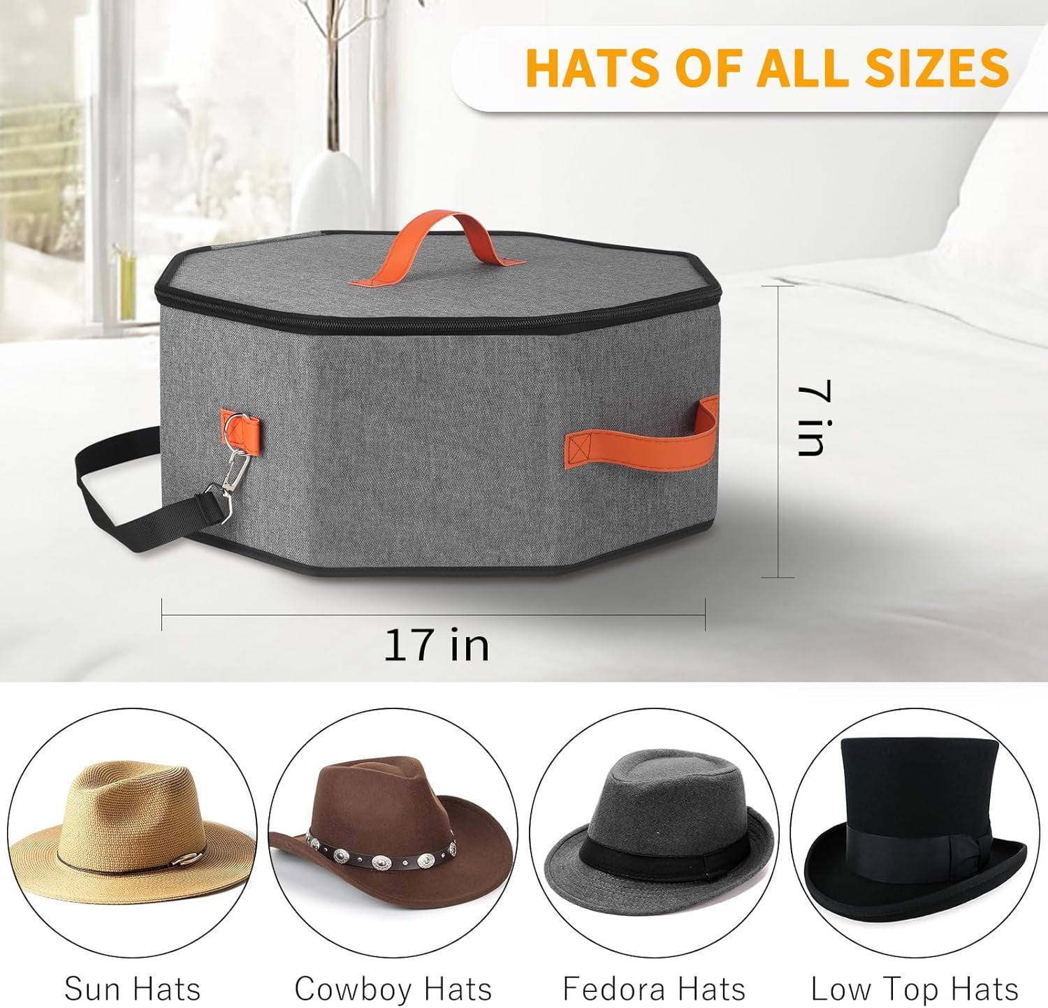 - 【Good Helper For Hat Storage】The top zipper cover prevents dust while better protecting your beloved hat. It can be folded when not in use. The simple and stylish hat box is a good helper for your travel and home storage.