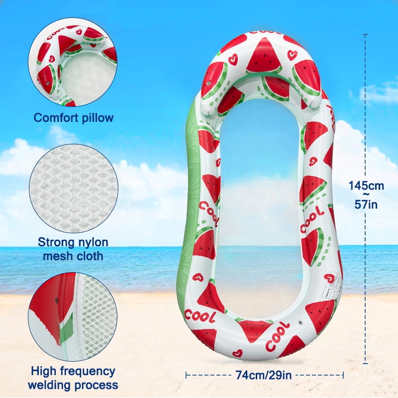 Quality materials: our pool hammock are made up of soft vinyl 50%, soft mesh 50%.