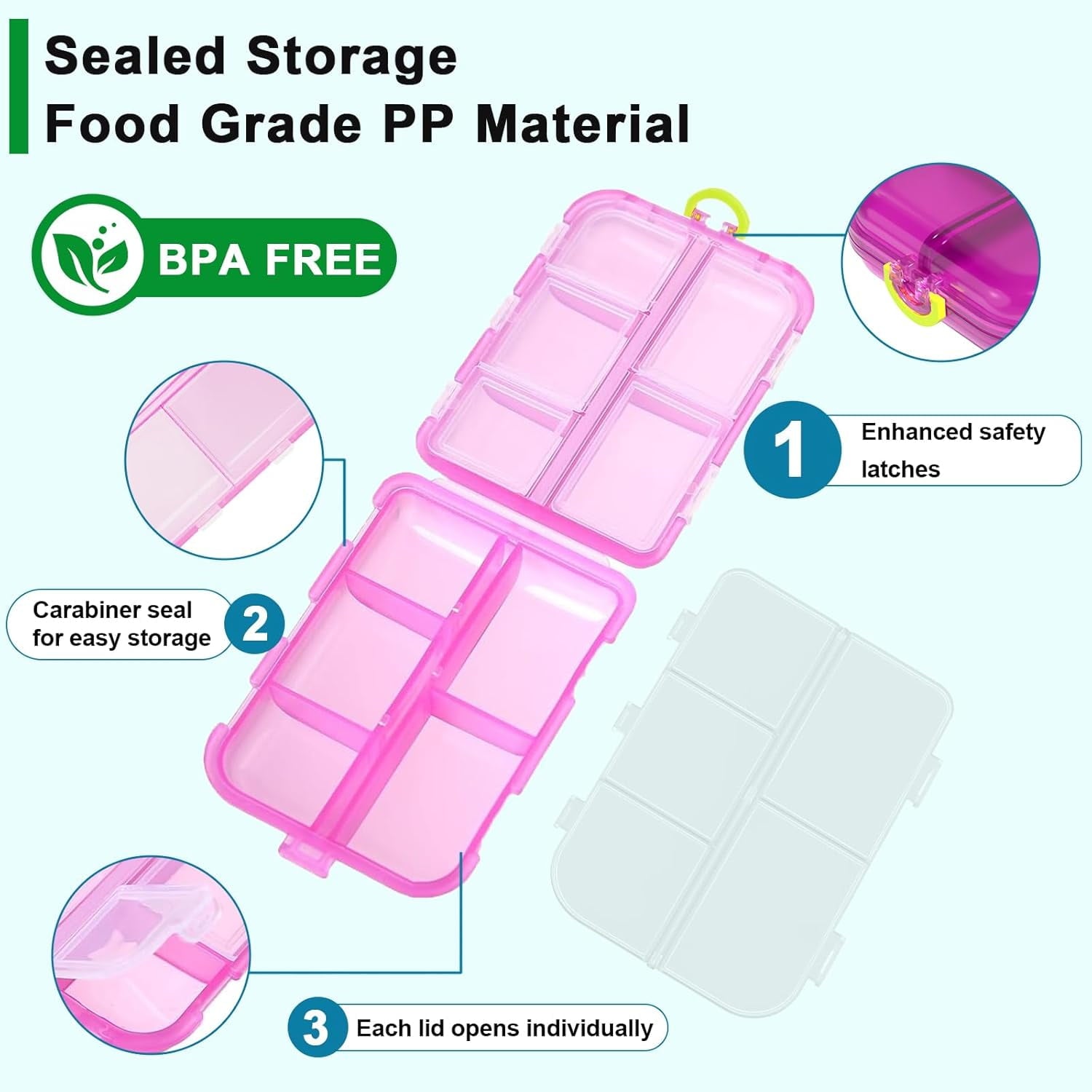 - High-Quality & Safe: BPA-free food-grade Polypropylene (PP), heat-resistant and odorless, easy to clean off pill residue providing a safe and hygienic storage solution for your medical and healthcare needs. Can be washed with water and dried before use