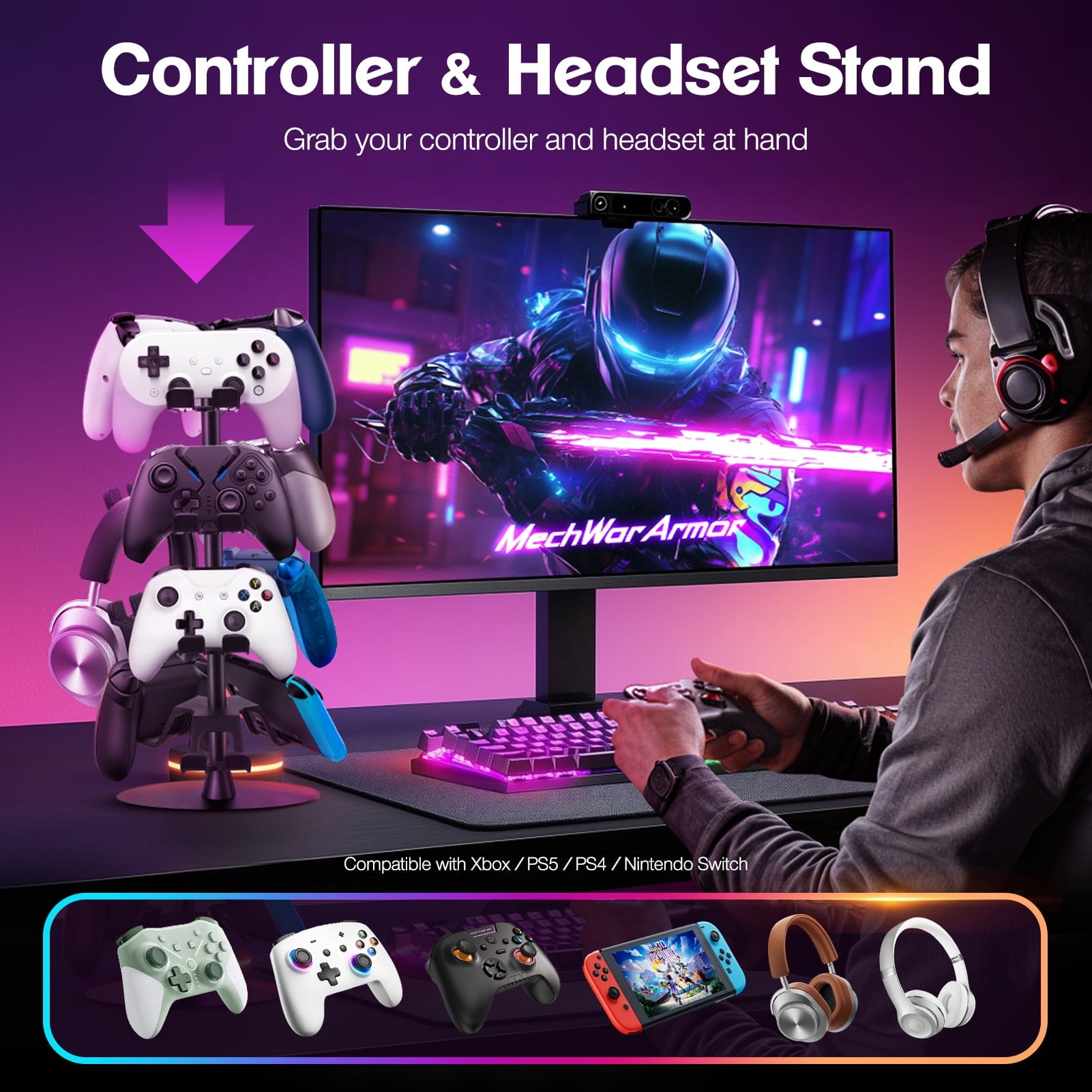 - 360° TWO DIRECTION ROTATION: This new upgraded controller and headset stand can be rotated 360°, more convenient to hold the gamepad and headphone, better improve your experience.