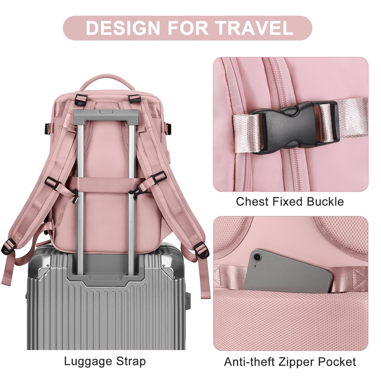 Livhil travel backpack for women and men features with breathable sponge, proving you a comfortable wearing. The zippers have been upgraded to Reinforced material to make sure they will not be teared or stuck during use. And 4 side fixed buckles and 1 chest fixed buckle, the side buckles will be helpful to compress the backpack when you over pack it. Adjustable padded shoulder straps, two cushioned handles, and a luggage strap let you carry it as a backpack, handbag, or attach it to suitcases. And A separated compartment on the bottom for shoes, can store a pair of slippers or low-top sneakers, allowing you to switch in different states of travel, business trips and outdoor sports. Large carry on backpack for women with built in USB charger outside and built in charging cable inside, this suitcase backpack for travel offers you a more convenient way to charge your phone while walking.