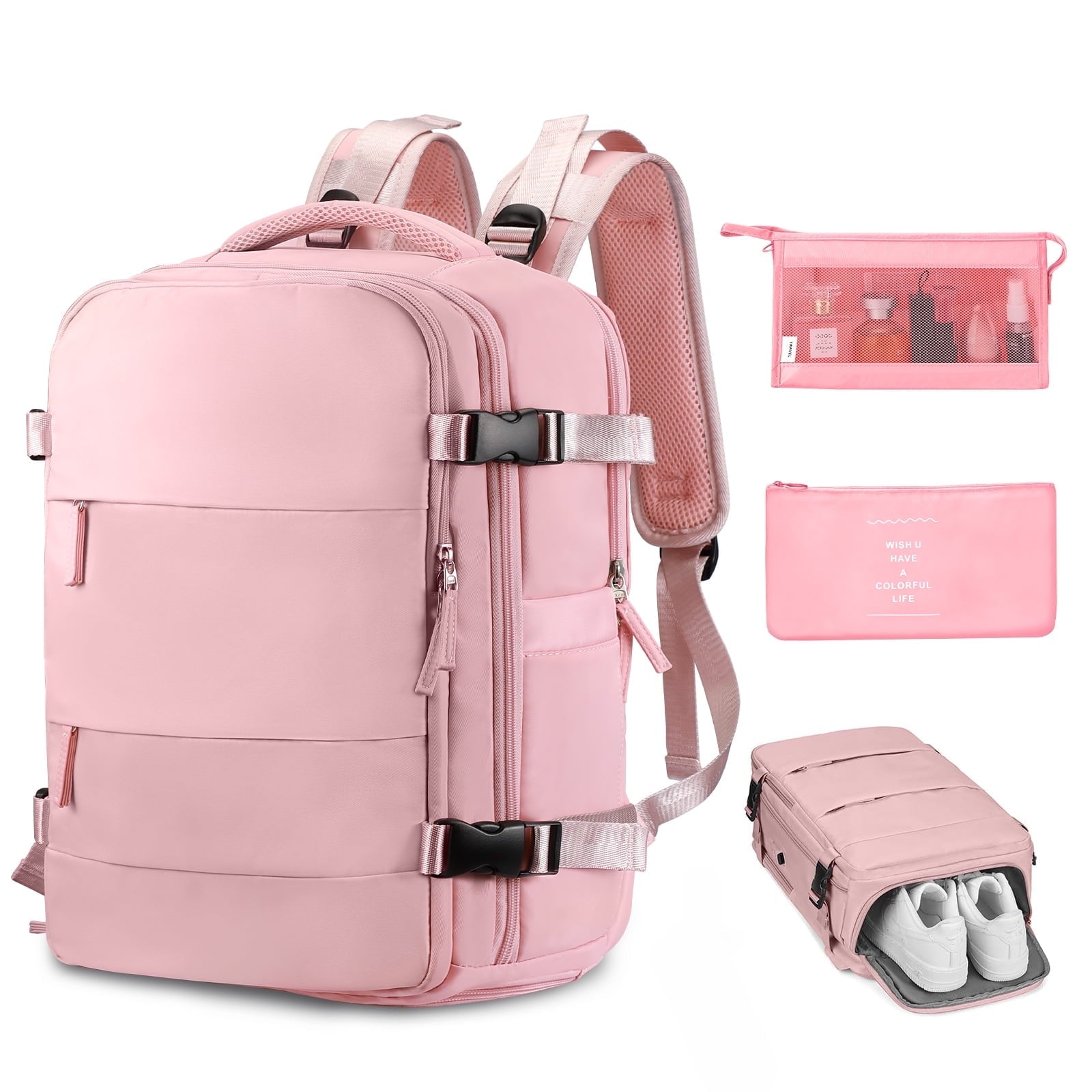 - 【Multi-Pockets】The portable backpack comes with a padded electronics pocket for up to a 16" laptop. Travel backpack has 3 main large compartments and 9 allocated inner and side pockets. Makes your item organized and easier to find. A separated compartment on the bottom for shoes, can store a pair of slippers or low-top sneakers