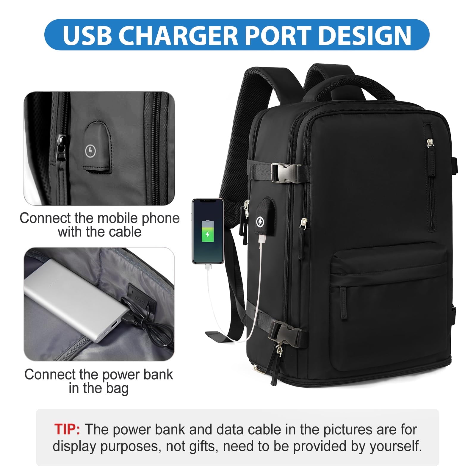 Note: Please note that travel backpacks for women and men airplane approved doesn't power itself and does not include a power bank, USB char!!!
