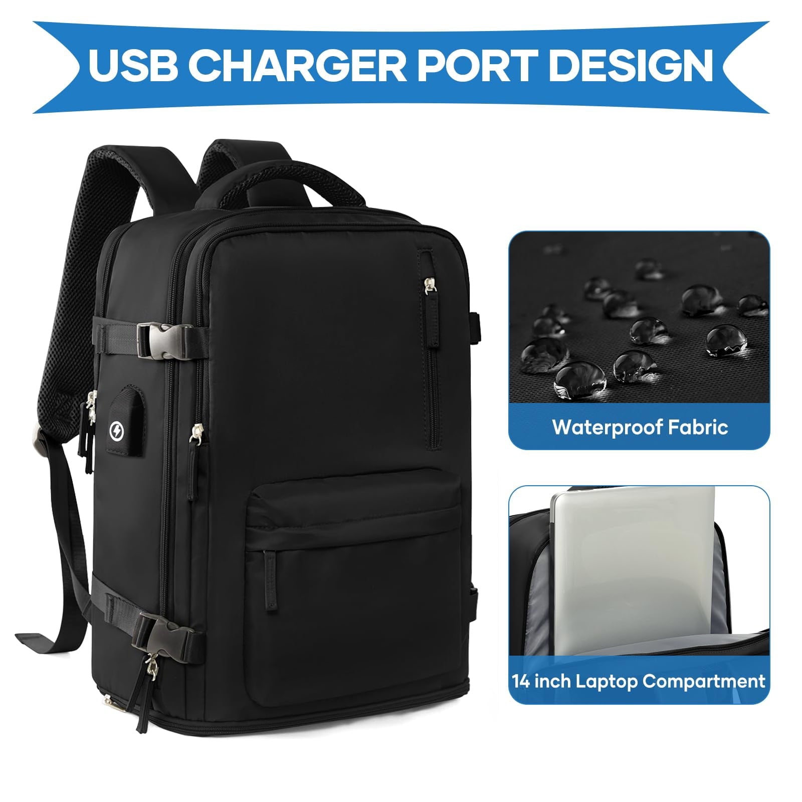 - 【Expandable & Extra Large Capacity】Travel backpacks for adults Features with 180 degree opening and enough depth of the interior space, opening the zipper expands the storage capacity from 20L to 35L, this backpack travel enables you to pack it almost like a suitcase