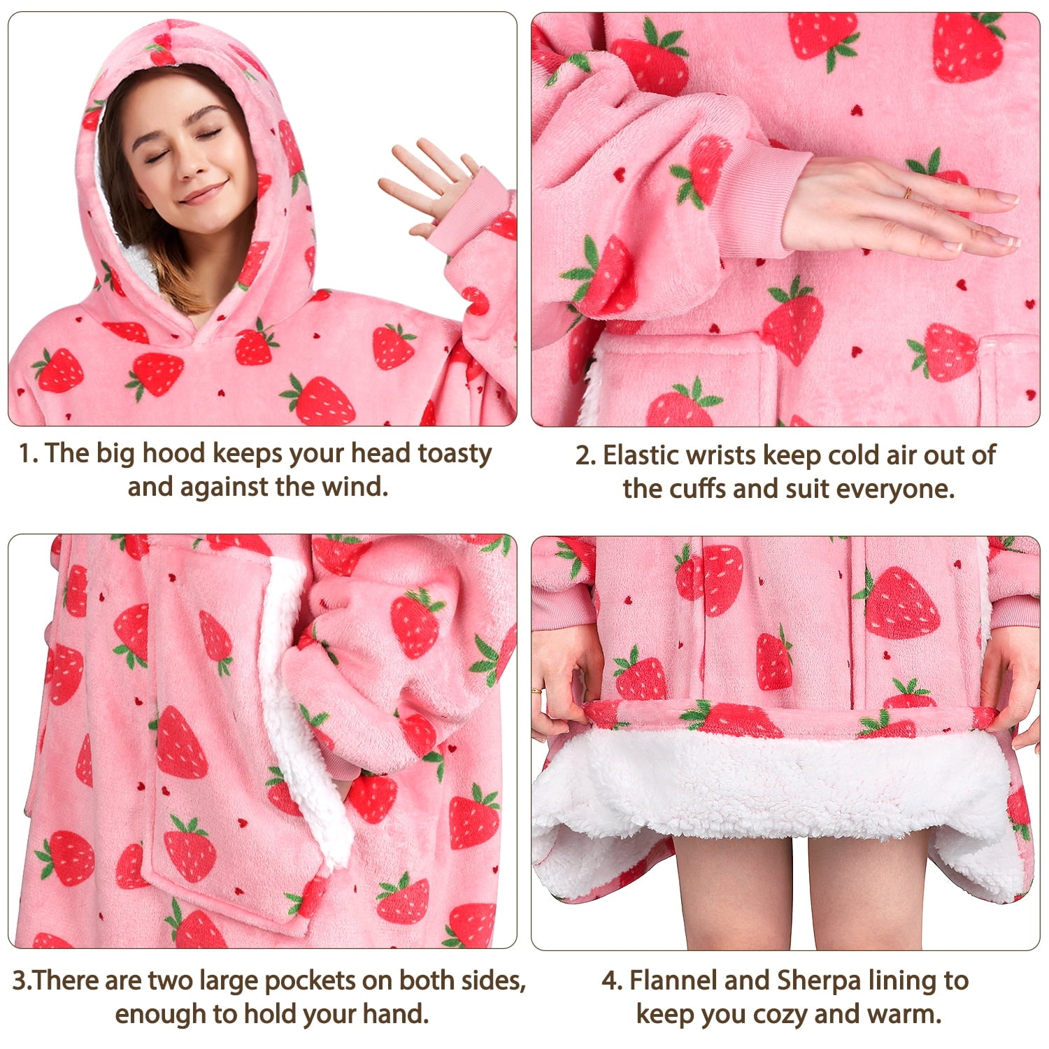 One Size Fits All & Machine Washable - The huge, oversized comfortable designed hoodie has a perfect size for any adult, teenage boys and girls, 14 yr up. It's machine washable, and this oversized blanket sweatshirt stays the same after many washes.